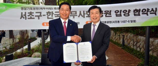 서초구청과 세무사길 위한 ‘공원 입양 협약식’개최…공원 활성화 위해 협력키로 - 나홍선 기자 | hsna@joseplus.com | 입력 2026-04-15 06:00:54
