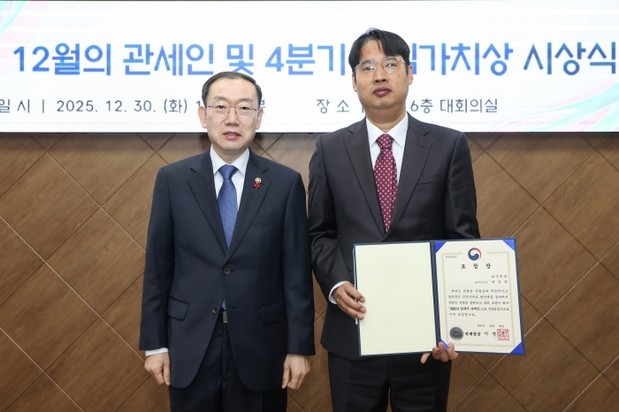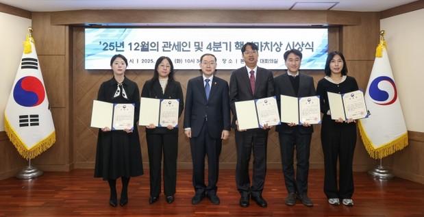 관세청은 12월 30일 2025년 12월의 관세인 및 업무 분야별 유공자와 2025년 4분기 핵심가치상 수상자를 선정해 시상했다고 밝혔다.