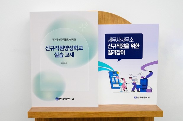 | ▲「세무사사무소 신규직원을 위한 길라잡이」와 「신규직원양성학교 실습교재」2종 |