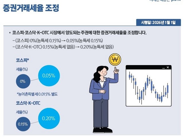 *** 적용세율 (코스피) 0%→0.05%(농특세 0.15%) / (코스닥·K-OTC)0.15%→0.20%(농특세 없음)