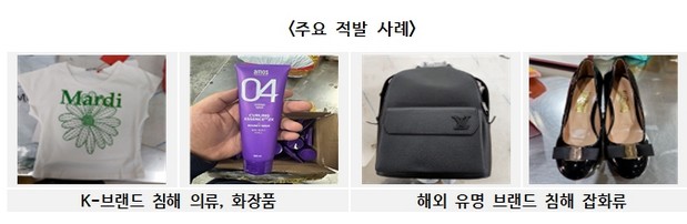 그 결과 화장품, 충전기, 신발 등 총 7만 4,830점의 위조상품을 적발했고, 이중 국내기업의 제품 신뢰도와 직결되는 K-브랜드 침해물품은 약 1만 4천 점에 달하는 것으로 나타났다. 이들은 대부분 중국으로부터 반입되고 있었으며, 품목별로는 신발이 가장 큰 비중을 차지했고 의류, 화장품류가 그 뒤를 이었다.