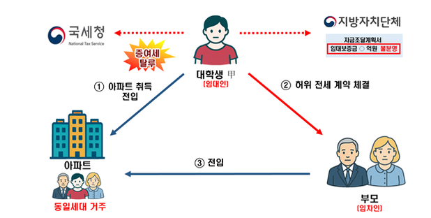 -조사 결과, 甲은 경제적 능력이 없는 대학생으로 별도 생계를 유지하기 어렵고 부모로부터 증여받은 아파트 취득자금을 숨기기 위해 부모와 허위로 전세계약을 체결한 것으로 확인함