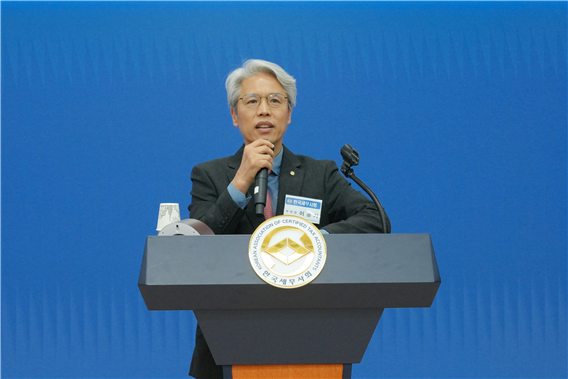 | ▲이동기 한국세무사회 부회장이 2026년 제2차 국세경력세무사 실무교육 개강식에서 인사말을 하고 있다 |