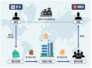 가상자산 환치기(10월) - 의뢰인으로부터 수수료를 받고 테더 등 스테이블 코인을 활용해 한국과베트남 간 송금 및 영수를 대행(78,489회, 9,200억 상당)한 환치기 범죄조직 5명 검거 |