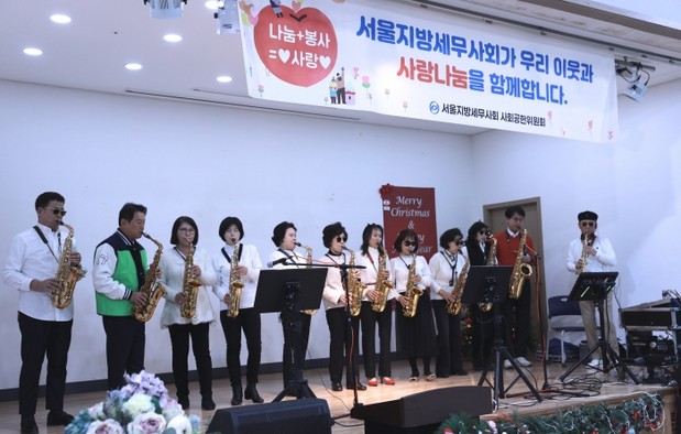 서울지방세무사회(회장 이종탁)는 22일 서울시 강동구 고덕동에 위치한 사회복지법인 우성원(원장 임경순)을 찾아 지적장애인들과 함께 색소폰 합동공연 및 장기자랑 등 위문공연을 통해 이웃사랑을 실천했다.