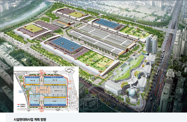 가락동 농수산물도매시장은 1985년 개설된 국내최초의 공영도매시장이자 거래량 기준 세계 최대 규모의 중앙도매시장으로 연간 230만t 거래로 서울시민의 먹거리 중 절반에 가까운 49%를 담당하고 있다. 그러나 가락수산물도매시장은 시설부족과 노후화, 부적합한 물류구조와 더불어 유통변화에 대한 효율적 운영 필요성에 따라 지난 2009년부터 시설현대화사업에 착수해 오는 2025년까지 3단계 순환공법으로 총 7,691억 원의 사업비를 투입해 건축연면적 54만7059㎡에 가변형 매장으로 새로 태어날 예정이다.