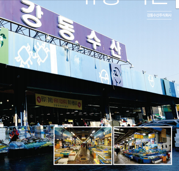 강동수산은 중앙도매시장의 역할인 전국 수산물 생산자와 소비자 보호에 중점을 둔 대표적 지킴이로 가락수산물도매시장을 30여 년째 선도해 오면서 국내 수산물 유통의 핵심적 중추기능을 담당하고 있다.