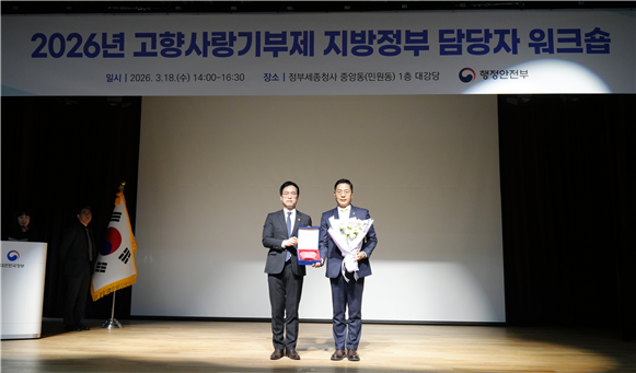세무사회는 18일 정부세종청사에서 열린 ‘2026년 고향사랑기부제 지방정부 담당자 워크숍’에서 전국 1만 7천 세무사들의 홍보대사 활동을 통해 제도 확산에 기여한 공로로 행정안전부 감사패를 받았다고 밝혔다.