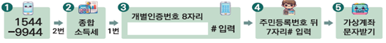 ○ARS 전화 신고 후에는 소득세 신고가 정상적으로 접수되었음을 알려드리는 문자메시지가 발송되며, 납부할 세액이 있는 납세자는 가상계좌를 문자로 받을 수 있다.