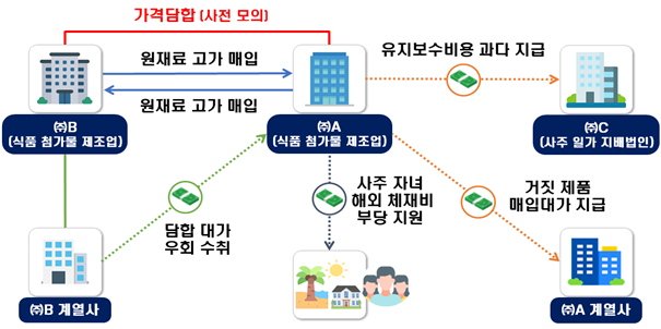 또한 거짓 세금계산서 수수로 가격담합 대가를 지급하고, 가격 인상으로 얻은 수익을 사주 일가 소유 법인에 부당하게 분여하거나, 법인자금을 사주의 호화・사치생활에 사용하는 행태에 대해서도 엄정 조사할 방침이다.