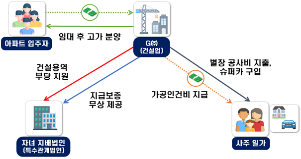 [주요 탈루사례3] 할인 분양을 내세워 아파트 임대 후 고가 분양, 임대 및 분양 수익을 유용하여 자녀 법인・사주 일가에 부당 지원한 아파트 건설업체 |