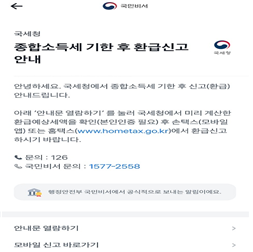 □안내 방법 또한 추가하여 모바일뿐만 아니라 국민비서(네이버, 카카오 등)에서도 납세자들이 환급금 신청을 놓치지 않도록 안내해 준다.
