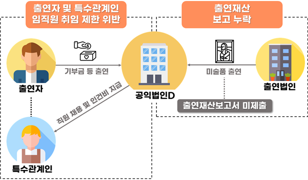 사례 3 | 출연자의 배우자・자녀 등 특수관계인을 임직원으로 고용하고 급여 지급 및 출연재산 보고서 제출 누락 |