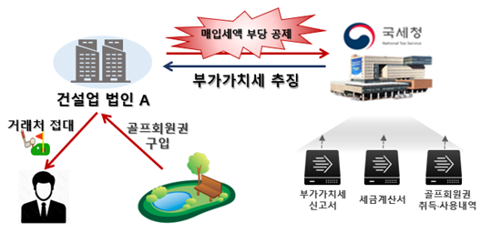 -건설업 법인 A는 골프회원권을 취득 후 거래처 접대 목적으로 이용한 것으로 확인되어 과다 공제 매입세액 및 가산세 추징