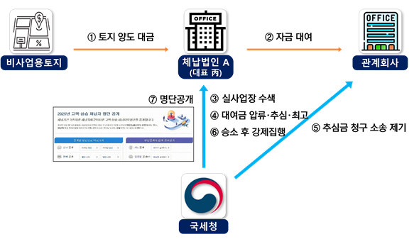 사례3 토지 양도대금을 관계회사에 대여하고 세금을 안 낸 체납법인 |