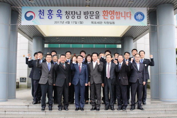| ▲ 천홍욱 관세청장이 17일 목포세관을 초도순시한 후 김수연 목포세관장 및 직원들과 기념촬영을 하고 있다. |
