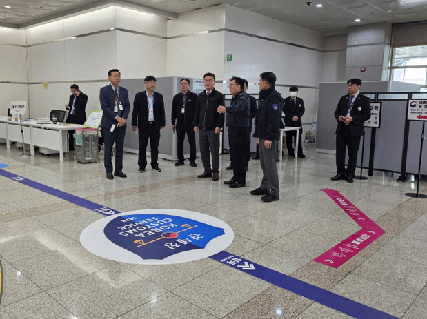 | ▲이종욱 관세청 차장(왼쪽에서 네번째)이 28일 포항경주공항을 방문해 2025 APEC 정상회의의 성공적 개최를 위한 최종 준비 상황을 점검하고 있다[관세청 제공] |