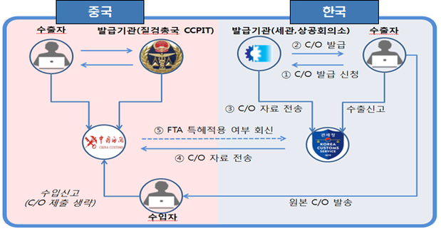 관세청은 중국 세관당국과 아시아태평양무역협정(이하 APTA) 전자원산지증명시스템(이하 CO-PASS) 시범운영을 마치고 11일부터 확대 시행한다고 밝혔다.