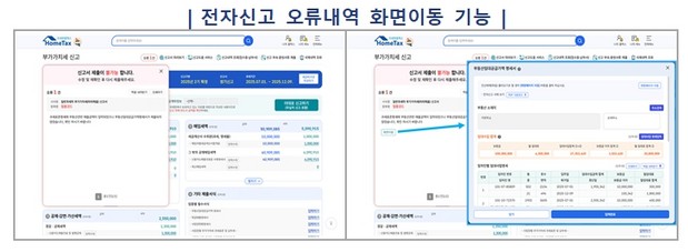 먼저, 신고서 작성완료 후 오류메시지가 생성되는 경우 바로 해당 오류화면으로 이동해 수정할 수 있도록 개선했고, 모바일 안내문에서 모바일 신고화면으로 바로 이동해 신고서를 작성할 수 있도록 개선했다.