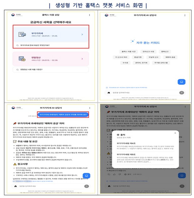 또한, AI 전화상담과 더불어 홈택스 챗봇상담 시 생성형 AI를 활용해 납세자의 질문이 기존에 없던 새로운 유형이더라도 상황에 맞춰 답변을 제공하는 등 상담편의를 제고할 계획이다.