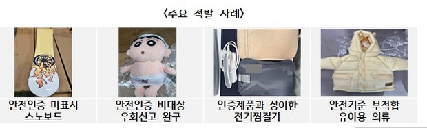 - 11월 11일부터 6주간 특별단속 실시…불량 온열기구, 중금속 검출 유아용 패딩 등 41만 점 적발