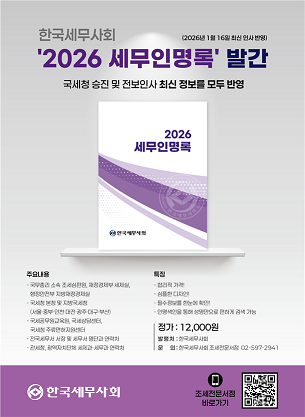 단 한 권으로 전국 모든 세무공무원의 소속ㆍ직위ㆍ연락처 등을 확인할 수 있는 ‘2026 세무인명록’은 한국세무사회 조세전문서점을 통해 구입할 수 있다.