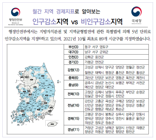 이번에는 행정안전부에서 지역균형발전을 위해 5년 단위로 지정하고 있는 인구감소지역과 비인구감소지역의 지역 경제 현황 진단 및 지역 상권 활성화 정책 수립 등에 활용할 수 있는 통계를 살펴봅니다.