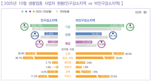 ○신규 사업자는 3.7만 명, 폐업 사업자는 2.5만 명으로 2024년 10월(신규 4.5만 명, 폐업 3.0만 명)에 비해 각각 17.8%, 16.7% 감소하였습니다.