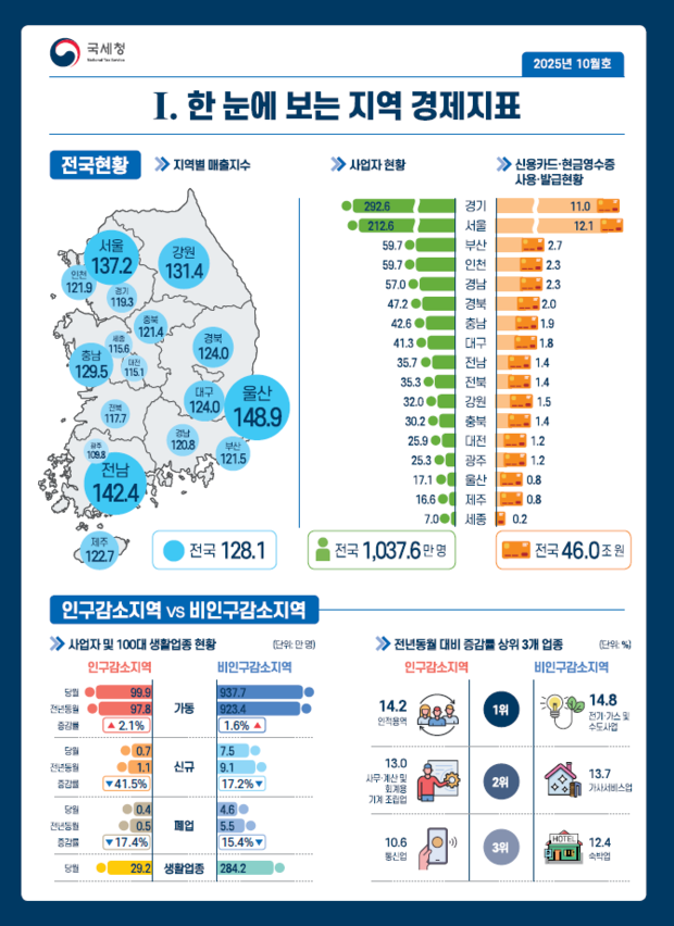 국세청, ‘월간 지역 경제지표’ 최초 발간