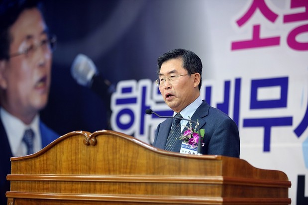| 이창규 신임회장이 회기를 인계받고 1만3천여 회원을 섬기는 진정한 심부름꾼으로 회장의 소임을 다할것을 약속하고 있다. |