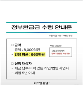 비즈넵 환급 광고화면(홈페이지) | 비즈넵 케어 광고화면(카카오톡) |