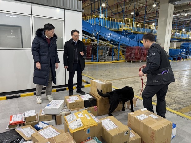 - 김정 조사국장, 국제우편물 2차 검사 현장 방문해 애로사항 청취…주 1회 마약탐지견 투입
