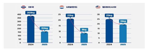 실제로 태국은 ’24년 대비 58% 감소했고, 네덜란드는 64%, 말레이시아는 24%가 감소해 해당 국가에서의 수출 국경 단속이 국내 밀반입 감소로 이어지는 것으로 분석된다.