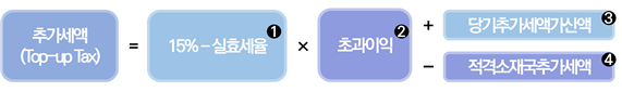 ㅇ(추가세액) 글로벌최저한세 규칙에 따라 국가별로 계산되는 세액으로, 다음의 계산식에 따라 산출