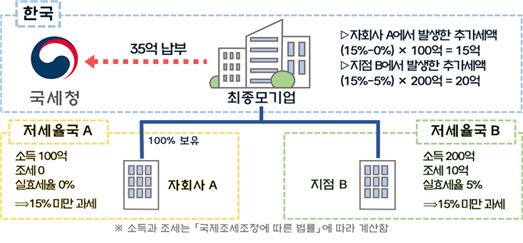 ㅇ(개요) 소재지국별로 계산한 다국적기업그룹의 실효세율이 15% 미만인 경우 그 차액을 일정한 규칙에 따라 과세하는 제도