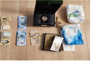-주소지를 합동수색하여 현금 일천만원, 고가시계 2점 등을 압류함