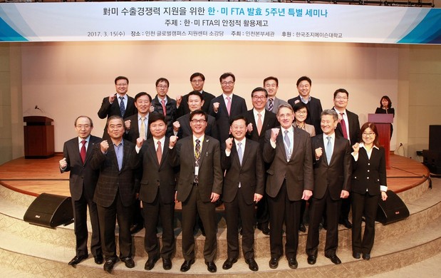 이어 인천본부세관에서 FTA 업무를 총괄하고 있는 김석오 FTA활용지원단장은 한‧미 FTA 발효 후 지난 5년간 한·미 FTA 이행과정에서 제기된 미국의 까다로운 원산지검증과 식품안전, 소비자보호 및 자국산업 보호를 위해 강화하고 있는 반덤핑방지관세 등 한·미 FTA 활용 장애요인과 한국 수출상품의 통관거부사례를 분석하고 對미 수출기업들의 효과적인 한·미 FTA 활용제고 방안을 제시했다.