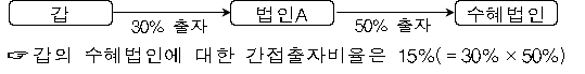 ○ 수혜법인에 대한 직·간접보유비율을 합하여 계산하되, 간접보유비율이 1천분의 1 미만인 경우 해당 출자관계는 제외합니다.