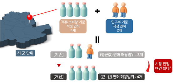 * 지역별 유통 수요(주류 소비량 기준)가 반영되어 신규면허 추가 허용 가능
