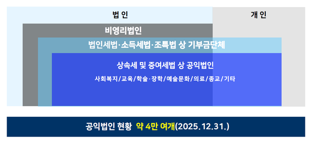 ○종교, 교육, 사회복지, 의료, 문화 등 불특정 다수를 위한 공익사업을 영위하는 비영리법인 등을 말함(상속세 및 증여세법 시행령 제 12조)