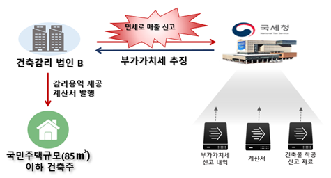 -건축감리 법인 B는 감리용역을 제공하고 다수의 계산서를 발행한 것으로 분석되어 면세 매출의 신고 적정성 여부에 대한 확인을 실시함