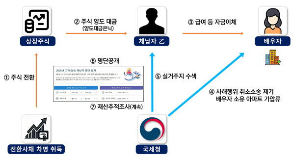3. 주식을 타인에게 명의신탁하고 배우자 명의 계좌로 고액의 자금을 수령하여 은닉한 체납자 |