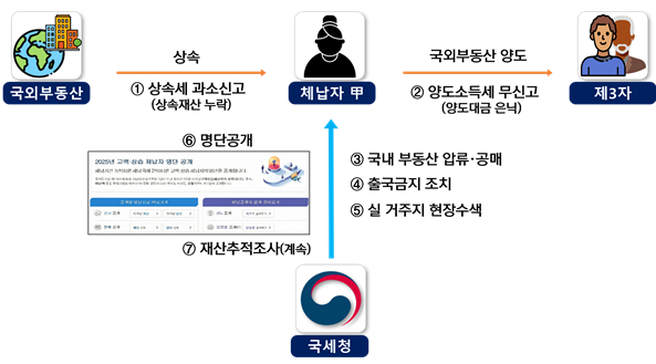 사례1 해외 부동산을 상속세 신고 시 누락하고 이를 양도한 후 관련 세금을 안 낸 체납자 |
