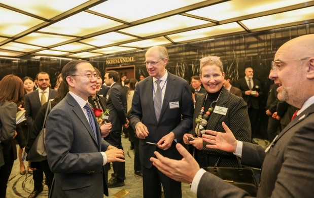 | ▲제44회 국제 관세의 날 행사에서 국외 인사들과 논의를 하고 있는 이명구 관세청장 |