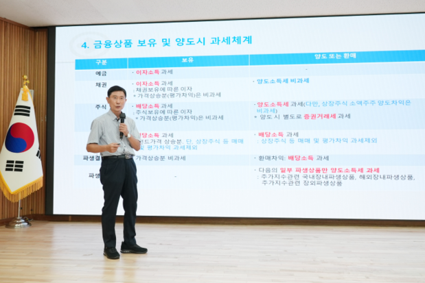 그는 이날 ‘금융거래와 세무 – 해외주식, ETF 등 주식거래를 중심으로’라는 주제로 금융상품의 소득 구분과 주식·파생상품 과세체계, 해외주식 및 ETF 거래 시 발생하는 주요 세무 이슈를 심도 있게 다뤘다.