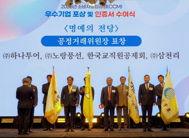 | ▲삼천리가 2026년 소비자중심경영 우수기업 포상 및 인증서 수여식에서 ‘명예의 전당’에 선정돼 공정거래위원장 표창을 수상받고 있다. |